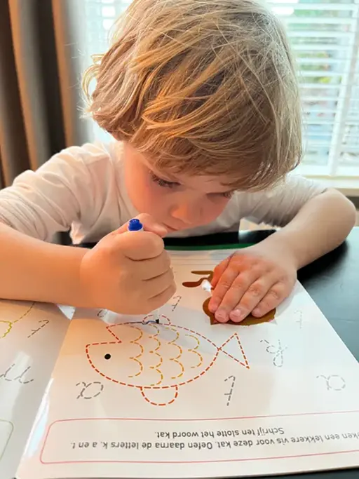 Een vraag die wij regelmatig krijgen maar bij ons mag je de kinderboeken altijd zelf houden! Voor de jongste leeftijden zit er vaak een fijne mix in van doeboekjes en voorleesverhalen – zodat er altijd iets tussen zit wat past bij het moment én de aandachtsspanne.